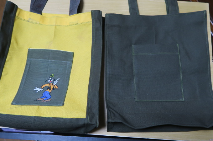 | ★以前Tシャツに手動のミシン刺繍を刺して着てTシャツが古くなり着れなくなったのを刺繍だけを切り取り手提げ袋にアップリケにしました。 |
