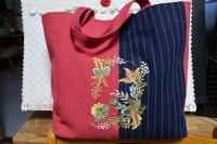 (721) ★タンスの肥やしになってるエプロンがありましたので解いて刺繍を入れて手提げ袋にしました。 |