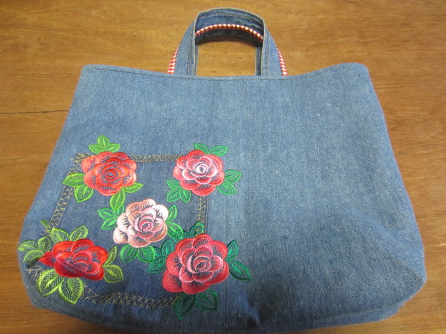 ★お古のデニーム生地のブラウスを捨てる前にエコ対策でbQ64とa[266番の袋が3個作れました。 |